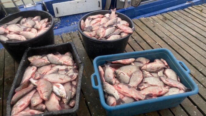 Poliţiştii de frontieră din cadrul Gărzii de Coastă au scos din lacul Razim 900 de metri de plase monofilament cu o captură de 225 kilograme de pește.