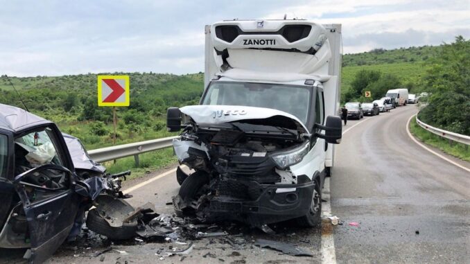 Polițiștii din cadrul Serviciului Rutier Tulcea au fost sesizați în cursul zilei de marți, 22 iunie, cu privire la producerea unui accident pe DN22 E87, între trei autovehicule.
