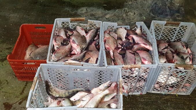 În urma verificărilor, au fost descoperite, în apă, plase de tip monofilament și fir textil, în lungime de 170 de metri, în care se afla capturată cantitatea de aproximativ 200 kilograme de pește.