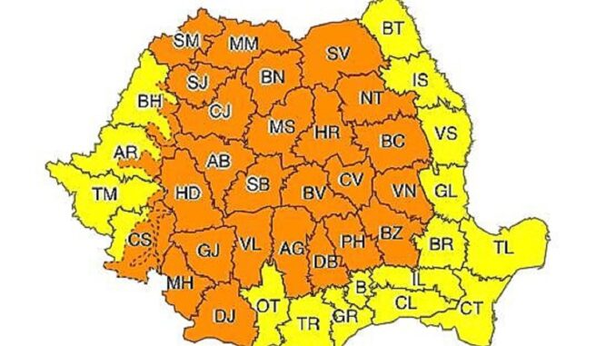 Administrația Naţională de Meteorologie a emis o avertizare meteorologică Cod Galben, valabilă din această noapte, de la ora 23.00 până duminică dimineață, la ora 06.00. Fenomenele vizate sunt cantități de apă însemnate, instabilitate atmosferică temporar accentuată, intensificări ale vântului.