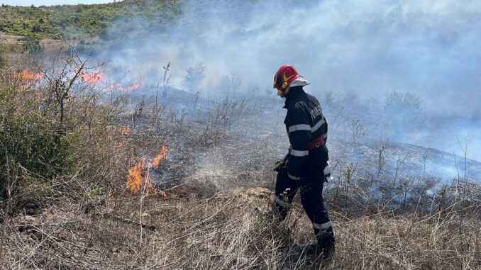 Pompierii militari au fost solicitați să intervină în dimineața zilei de miercuri, 24 august, în jurul orei 10.45, pentru gestionarea unei situații de urgență provocată de izbucnirea unui incendiu de vegetație uscată și viță de vie, în dreptul podului de dintre localitățile Tulcea și Cataloi.