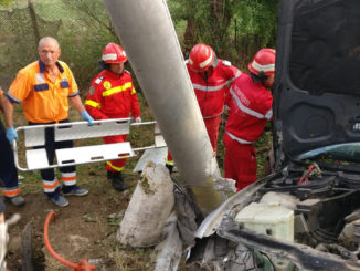 FOTO VIDEO Accident grav în localitatea Mineri – o mașină scăpată de sub control a rupt un stâlp de beton