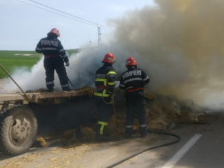 FOTO VIDEO O remorcă încărcată cu baloți de paie a luat foc în mers în apropiere de Tulcea