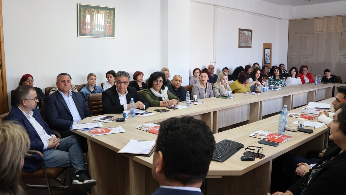 Vicepreședintele CJ Tulcea, Mihai Huleni, întâlnire de lucru la Inspectoratul Școlar Județean, de Ziua Internațională a Rromilor. FOTO CJ Tulcea