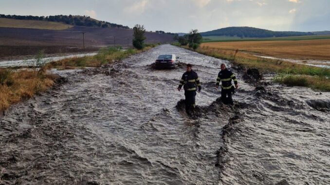 Pompierii tulceni intervin după ce 12 autoturisme și un microbuz au fost surprinse de o viitură în zona localității Horia.
