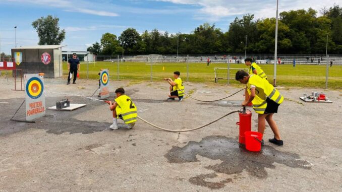 40 de elevi s-au întrecut astăzi, pe Stadionul Bididia din municipiul Tulcea, pentru trofeul concursului “Prietenii pompierilor” organizat de Inspectoratul pentru Situații de Urgență “Delta” al județului Tulcea, împreună cu Inspectoratul Școlar Județean Tulcea.