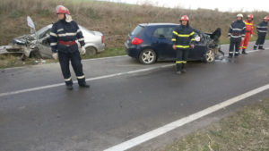Din primele informații se pare că a avut loc un impact frontal între două autoturisme, în care se aflau doar șoferii. Unul dintre aceștia a fost găsit în stare gravă, iar celălalt, conștient.