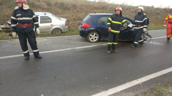 Doua mașini s-au ciocnit frontal pe DJ 222 între localitățile Tulcea și Agighiol. FOTO ISU Delta Tulcea