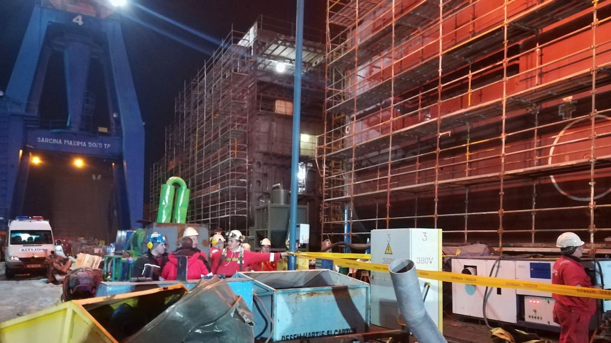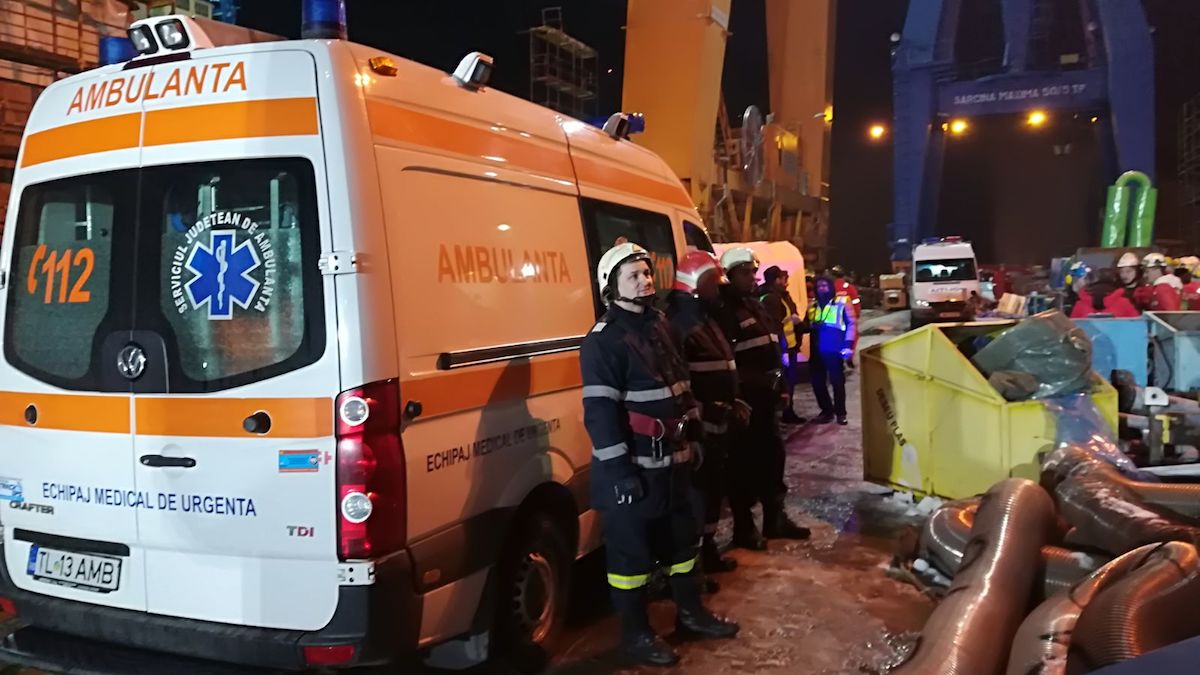 „Detașamentul de pompieri Tulcea a fost solicitat să intervină pentru scoaterea unei persoane prinse între doua piese a unui vapor la Șantierul Naval Tulcea. Din nefericire victima a decedat în urma accidentului,“ au precizat reprezentanții ISU Delta Tulcea.