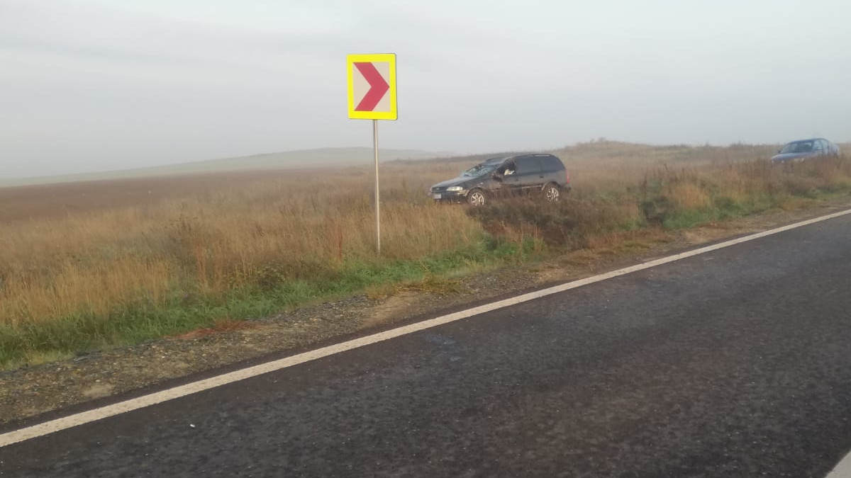Mașina s-a răsturnat pe câmp, în apropiere de localitatea Baia, FOTO IPJ Tulcea