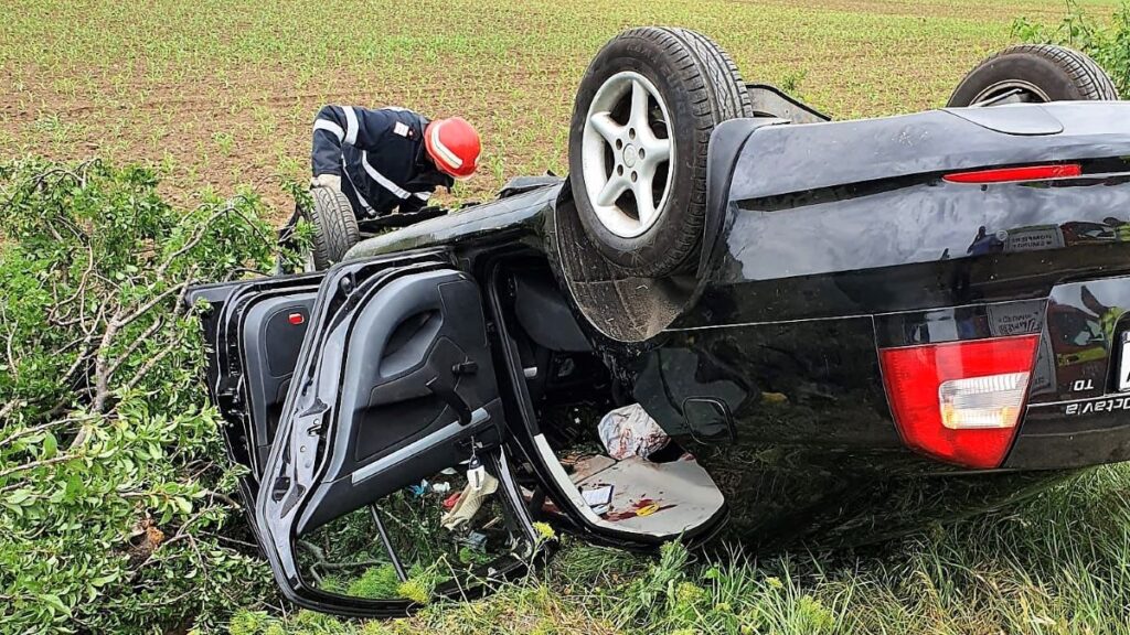 Accident rutier cu victimă încarcerată, la ieșirea din Nicolae Bălcescu spre Ciucurova. FOTO: ISU Tulcea