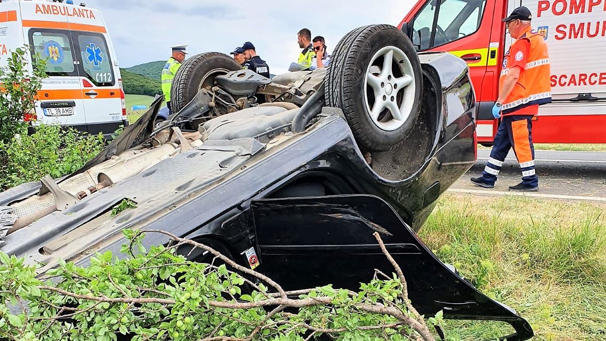 Accident rutier cu victimă încarcerată, la ieșirea din Nicolae Bălcescu spre Ciucurova. FOTO: ISU Tulcea