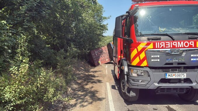 Misiunea este în dinamica, iar circulația este momentan blocată. Se așteaptă un utilaj de capacitate mărită pentru a ridica autocamionul” – ISU Tulcea.