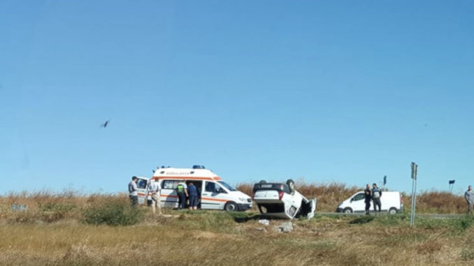 Un autoturism s-a răsturnat în afara părții carosabile. FOTO Info Trafic Tulcea