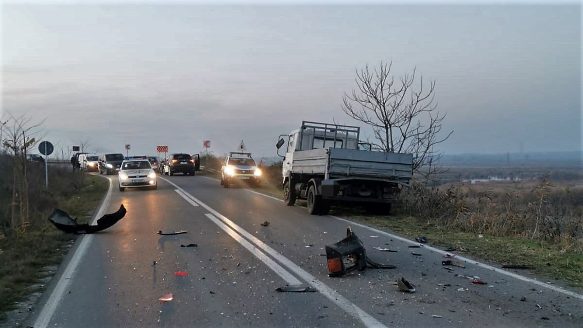Accident rutier petrecut în urma unei depășiri pe contrasens, pe DJ 222 C. FOTO IPJ Tulcea