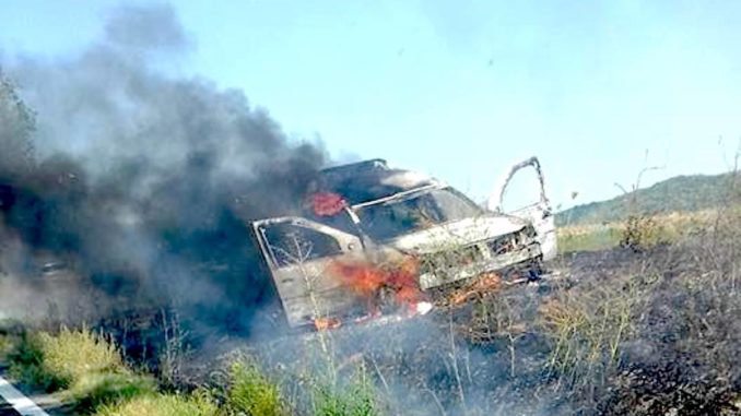 Pompierii de la stația Babadag au fost solicitați să intervină. Martorii spun că Dacia s-a ciocnit cu o altă mașină, după care a ricoșat în afara drumului. Autoturismul a fost cuprins imediat de flăcări. Echipele de salvare care au sosit la locul accidentului au observat că focul s-a întins și la vegetația uscată din zonă.