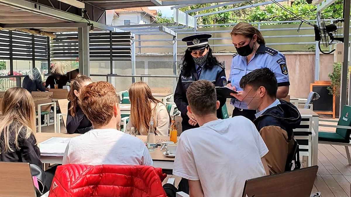 Elevi prinși la terasă, în loc să fie la școală. FOTO IPJ Tulcea