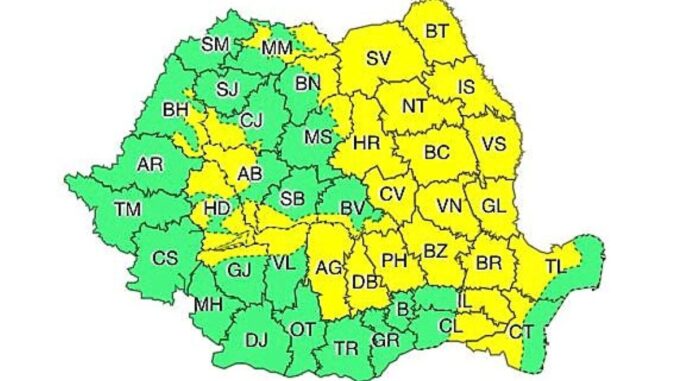Administrația Națională de Meteorologie a emis o atenționare meteo Cod Galben, de instabilitate atmosferică temporar accentuată, valabilă până luni, 12 iulie, ora 23.00.