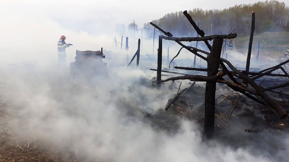 Incendiu la o stână de oi, în apropiere de localitatea Măcin. FOTO: ISU Tulcea