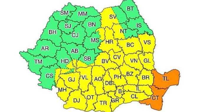 Astfel, în județele Tulcea și Constanța, cu precădere în zona litoralului, instabilitatea atmosferică va fi accentuată și se va manifesta prin averse torențiale, frecvente descărcări electrice, vijelii și grindină. Va ploua abundent și se vor înregistra cantități de apă ce vor depăși 40 l/mp și izolat 50 – 60 l/mp.