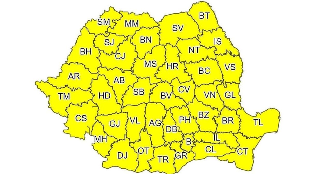 Atenționare meteorologică Cod Galben, valabilă și pentru județul Tulcea!