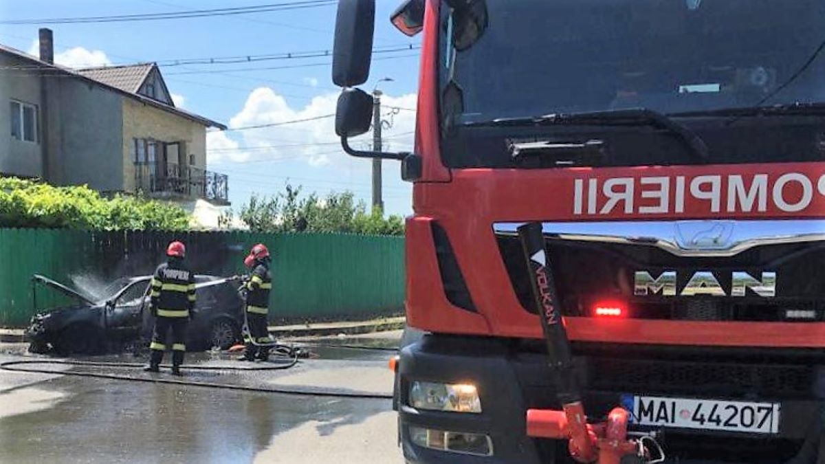 Autoturism distrus într-un incendiu, pe o stradă din Cartierul Nou din Tulcea. FOTO ISU Tulcea