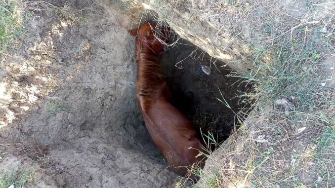 Cal salvat de pompieri după ce căzuse într-o groapă, în Babadag. FOTO ISU Tulcea