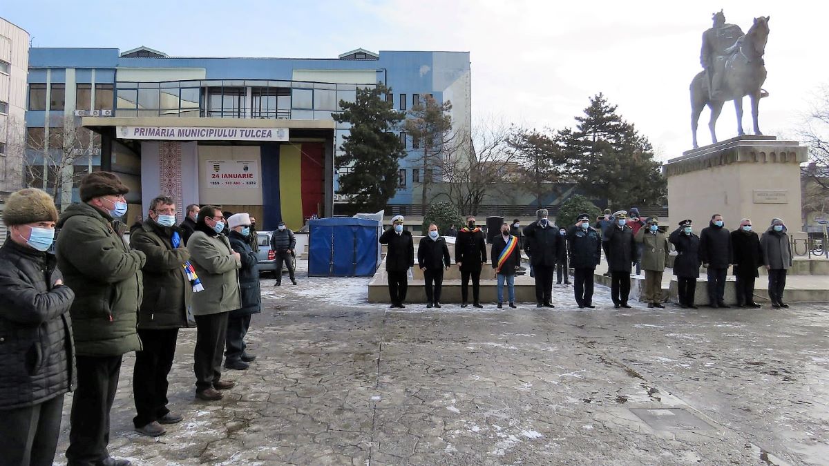 Ceremonialul dedicat împlinirii a 163 de ani de la Unirea Principatelor Române, în Piața Civică. FOTO CJ Tulcea