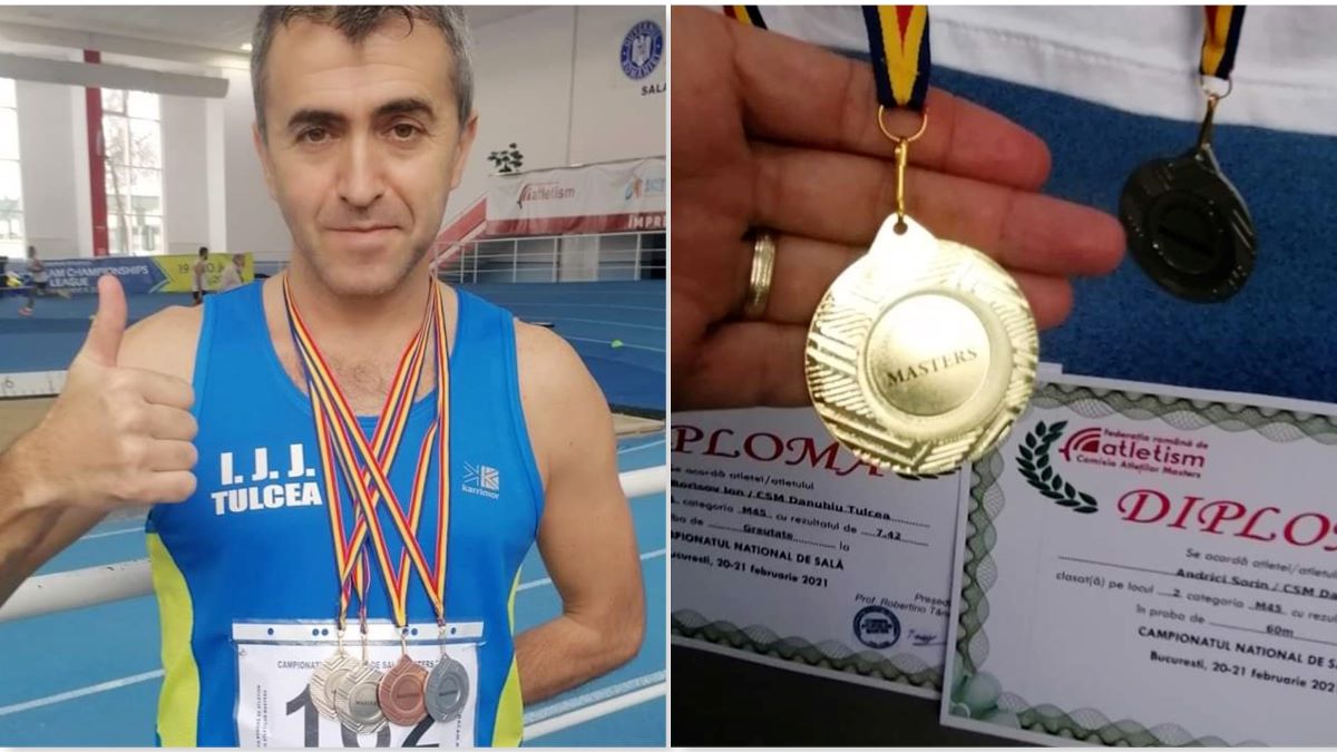 Sorin Andrici și medaliile obținute la Campionatul Național de Atletism Masters. FOTO IJJ Tulcea