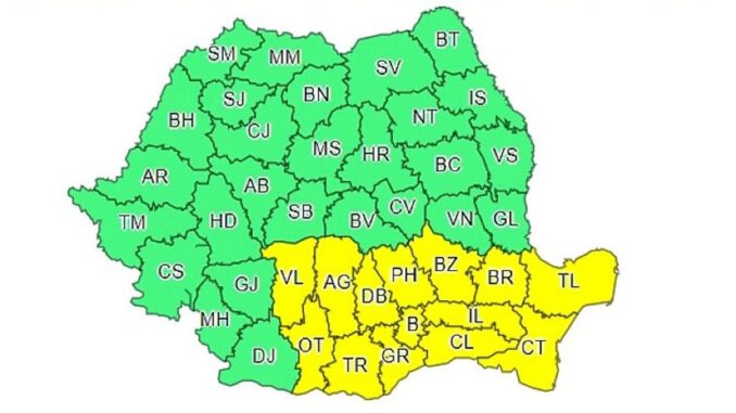 Administrația Naţională de Meteorologie a emis un Cod Galben de vreme severă, ce prevede instabilitate atmosferică temporar accentuată, pentru 14 județe din sud-estul țării, între care și Tulcea.