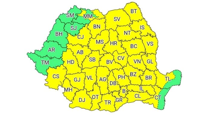 Administrația Națională de Meteorologie (ANM) a emis în dimineața zilei de vineri, 17 iunie, o avertizare Cod galben de ploi și vijelii, valabilă, până sâmbătă, în 36 de județe din țară.