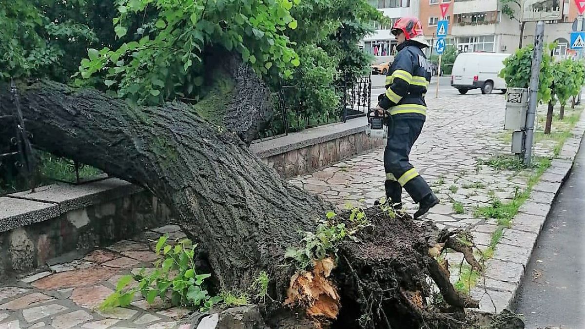 Copac căzut pe strada Progresului din municipiul Tulcea. FOTO ISU „Delta”
