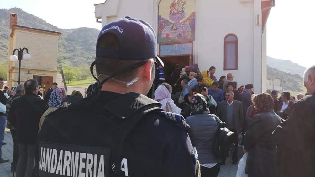 IJJ TULCEA Jandarmii tulceni, la datorie în perioada Sărbătorilor Pascale. FOTO IJJ Tulcea jandarm, biserica, slujba, sarbatoare