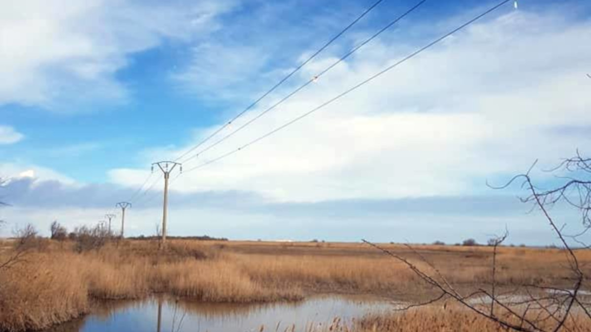Pentru siguranța păsăriloe, liniile electrice aeriene din Rezervația Biosferei Delta Dunării sunt marcate. FOTO ARBDD