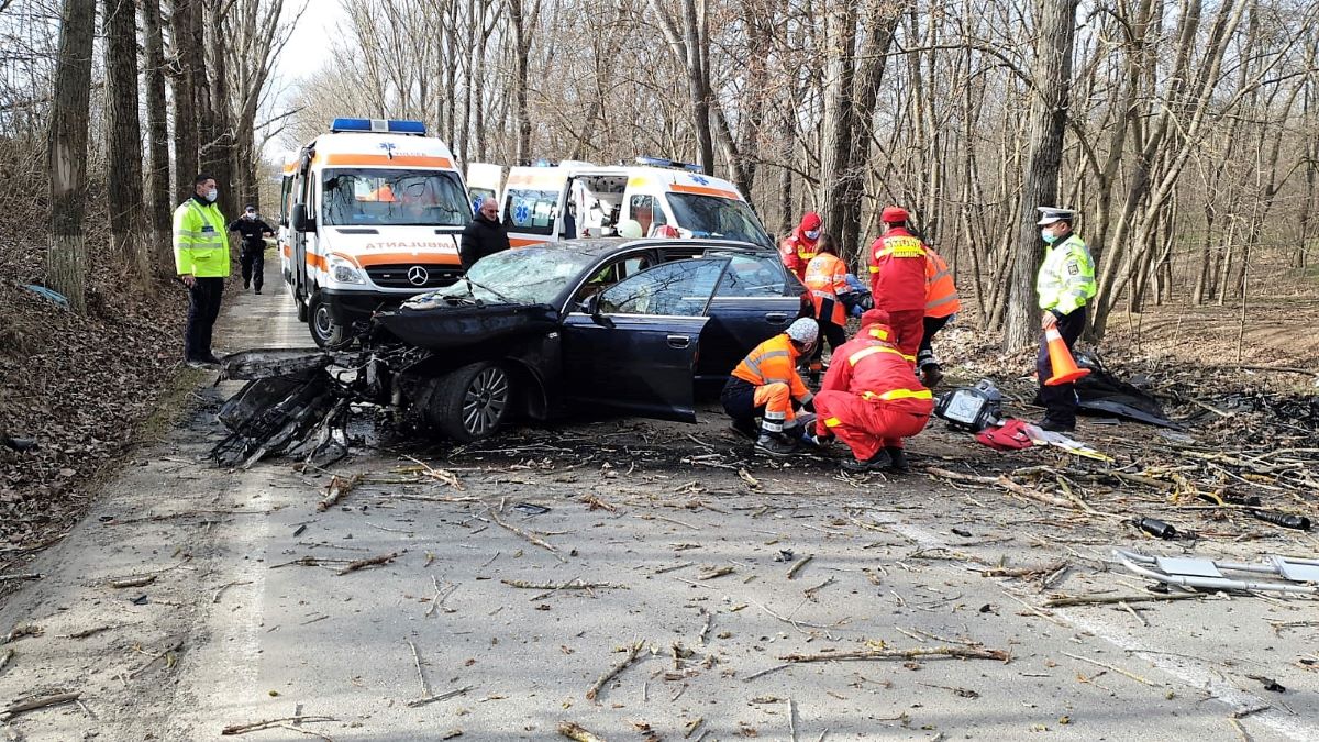 Doi adulți și un copil, morți într-un accident rutier petrecut la ieșire din Tulcea către Agighiol. FOTO IPJ Tulcea