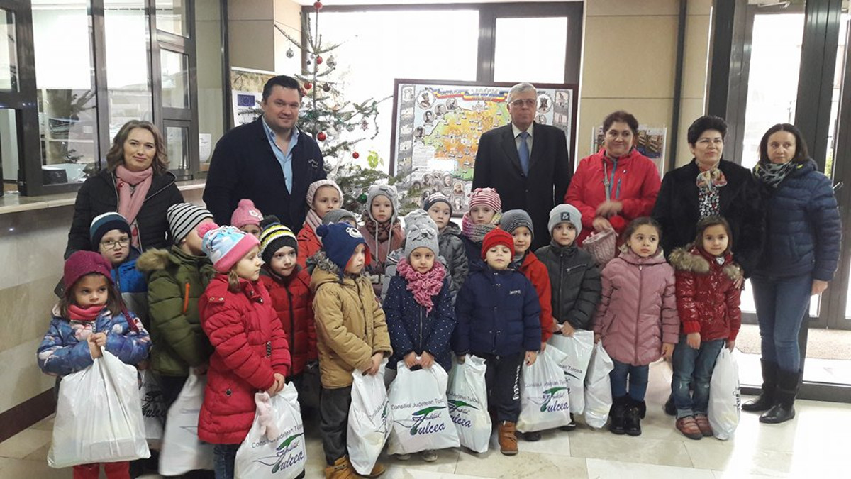 Elevii tulceni au mers cu colindul la CJ Tulcea. FOTO CJ Tulcea