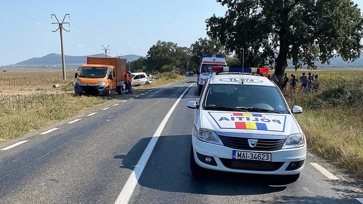 WhatsApp Image 2020-09-16 at 15.29.21 Femeie rănită după ce a intrat cu mașina într-un autobuz, lângă Niculițel. FOTO IPJ Tulcea