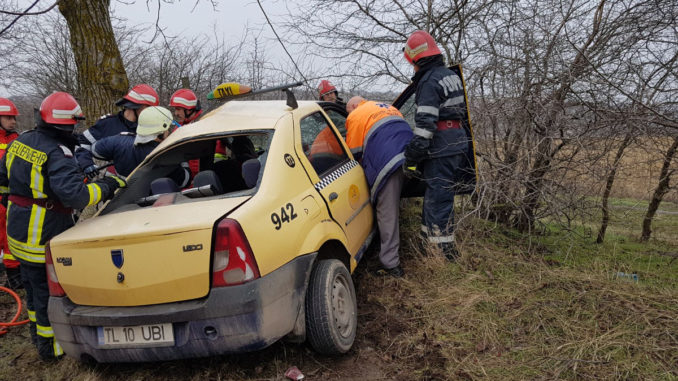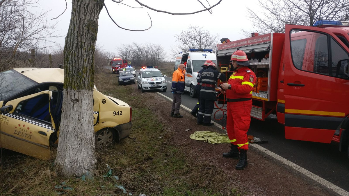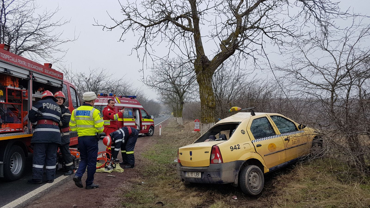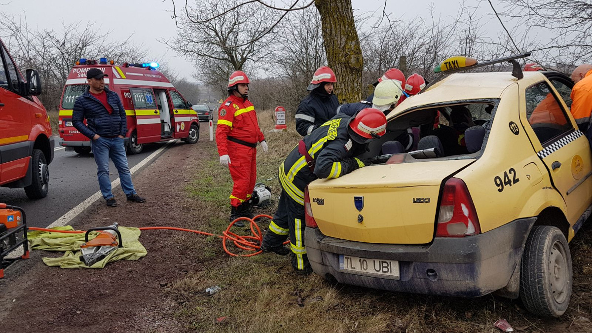 Accidentul rutier s-a produs în jurul orei 9.00, când șoferul unui taxi al firmei Delta, a părăsit partea carosabilă și s-a izbit violent de un pom, iar apoi a ricoșat. În urma impactului, șoferul, un bărbat de 57 de ani care se afla singur în mașină a rămas încarcerat. La fața locului au fost trimise o autospecială de descarcerare grea, un SMURD, o autospecială de stingere cu apă și spumă și 10 subofițeri, un echipaj al Serviciului Județean de Ambulanță și ale Serviciului Rutier.