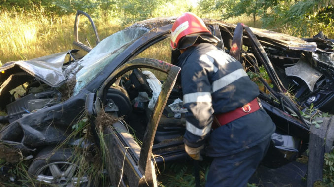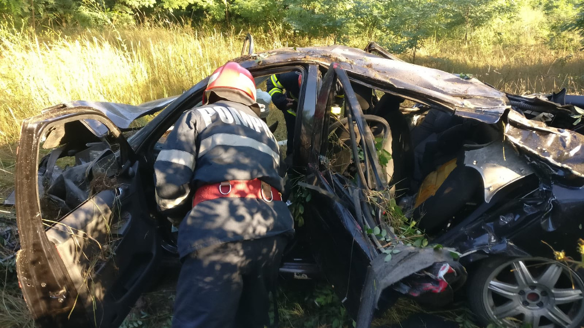 Pompierii tulceni au intervenit pentru scoaterea victimelor din mașina avariată. FOTO ISU Delta Tulcea