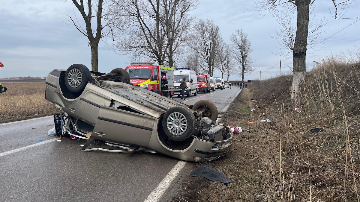 Ajunși la locul evenimentului, salvatorii au găsit un autoturism răsturnat în interior fiind un bărbat încarcerat, iar alte trei victime, o femeie și doi minori în afara autoturismului.