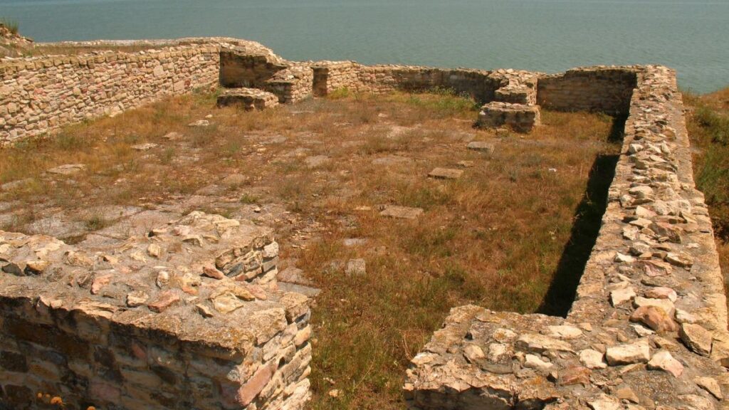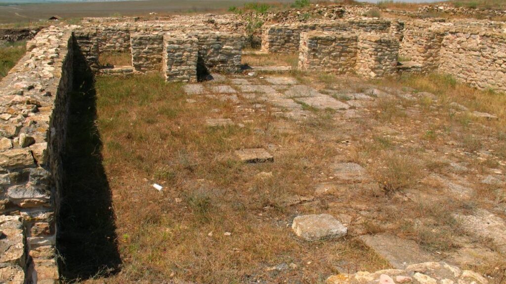 Cetatea romano-bizantină avea o suprafaţă de aproximativ 2,6 ha, o formă aparent triunghiulară cu opt turnuri, şase contraforturi (bastioane), două porți principale – pe laturile de vest și sud, și două porți mici pe latura de sud. Sistemul defensiv cuprindea, în afară de incintă, două valuri de pământ cu şanţ. În interiorul cetăţii au fost dezvelite o serie de edificii publice şi private datând din sec. V-VII: „pretoriul”, trei basilici și locuinţe.