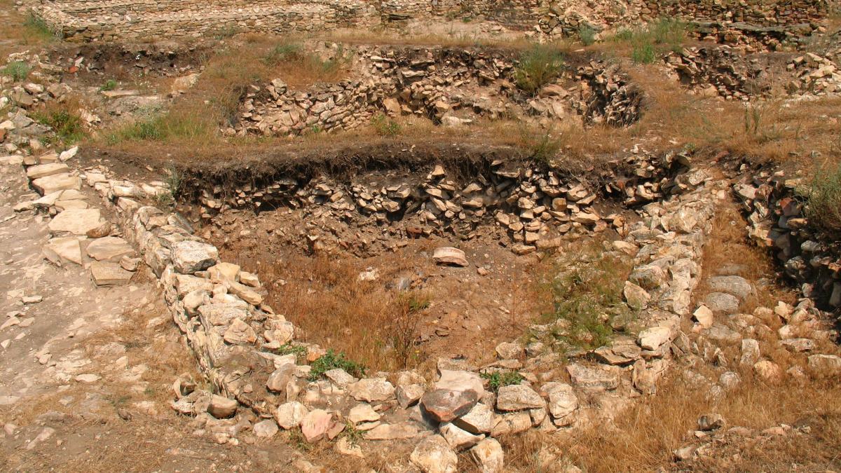 Din perioada arhaică datează: un impresionant complex funerar din necropola cetăţii, ce a aparţinut unui personaj important din prima generaţie de colonişti, urme de locuire în zona de est a falezei, două cuptoare artizanale pentru ceramică; perioada clasică este ilustrată printr-un segment al zidului de incintă, edificii şi cuptoare situate spre capul promontoriului, grupuri de morminte tumulare asociate pe criterii familiare în necropola cetăţii; epocile elenistică târzie şi romană timpurie sunt reprezentate prin unele vestigii păstrate pe platoul Argamens, dincolo de sistemul de apărare al cetăţii romano-bizantine.