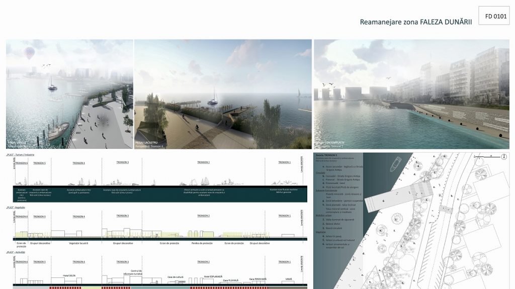 Președintele Consiliului Județean Tulcea, Horia Teodorescu, alături de vicepreședintele Dumitru Mergeani și de viceprimarul municipiului, Andaluzia Luca, a prezentat, la mijlocul acestei săptămâni, cele trei proiecte premiate în cadrul concursului de soluții „Reamenajare zona Faleza Dunării“.