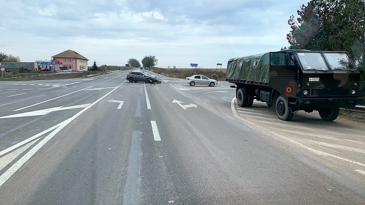 Un accident rutier în care a fost implicat un convoi militar a avut loc, vineri în jurul prânzului, pe DN 22, în zona Două Cantoane din județul Tulcea.