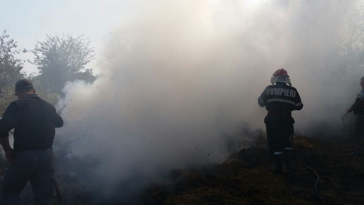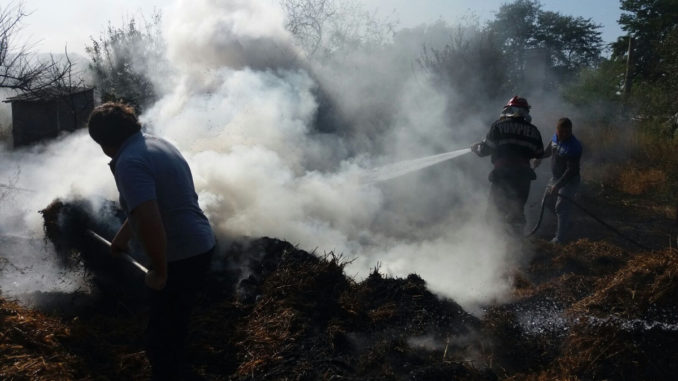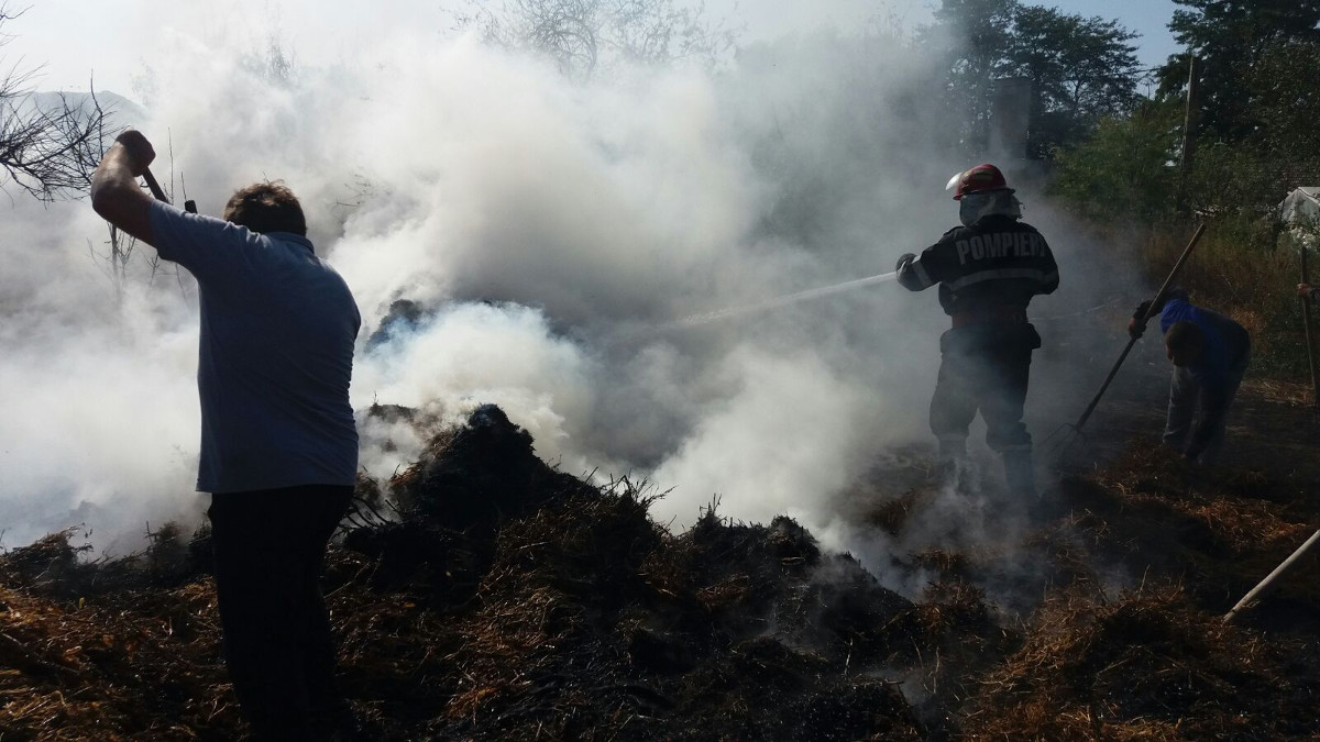 Pompierii au intervenit la stingerea unui incendiu la o sura de paie. FOTO ISU Delta Tulcea