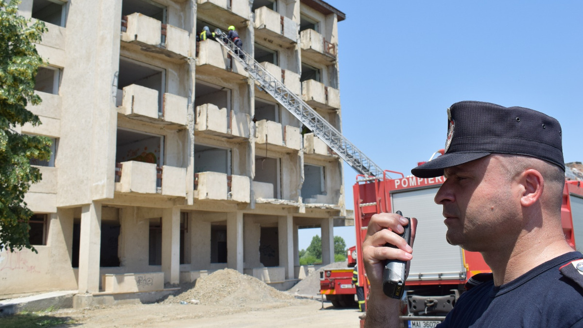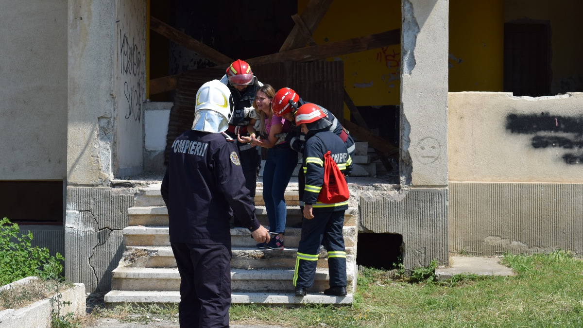 Pompierii au intervenit la simularea unui cutremur de peste 7 grade pe scara Richter. FOTO ISU Delta Tulcea