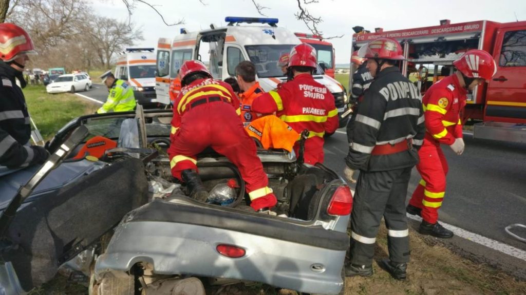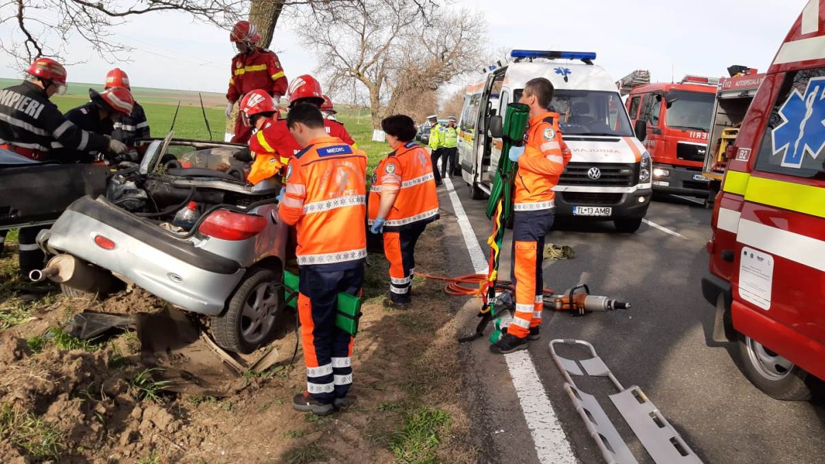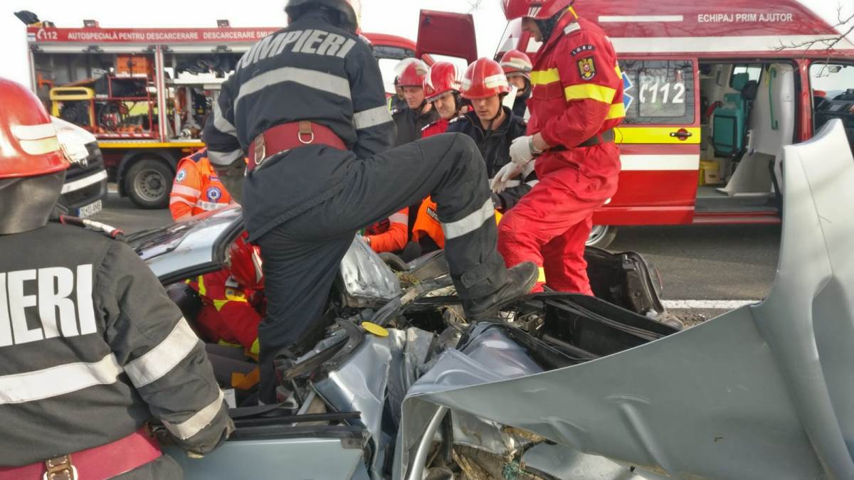 Șoferul și o pasageră au fost extrase dintre resturile contorsionate ale autoturismului și predate echipajelor medicale.