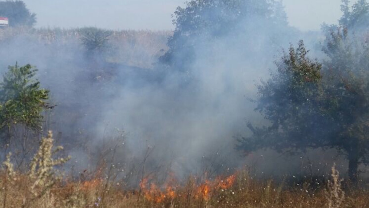 Flăcările au cuprins o suprafață de aproximativ 1000 mp. La fața locului au fost trimiși cinci subofițeri care intervin cu o autospecială de apă și spumă.