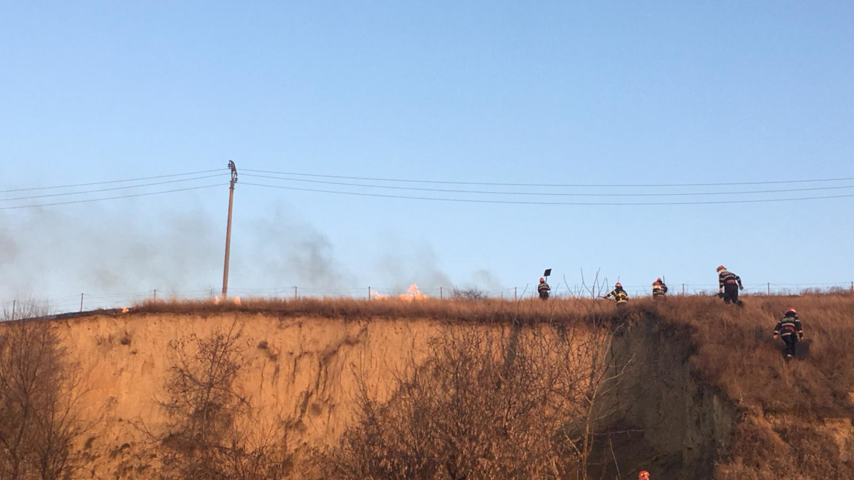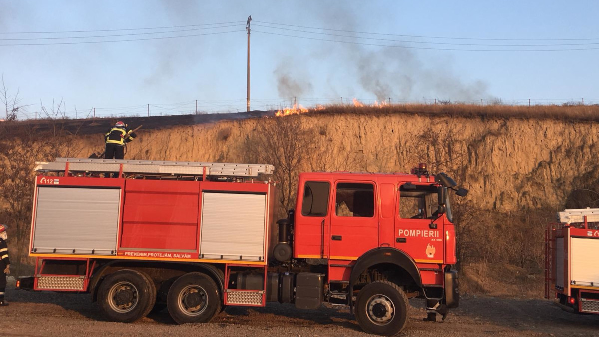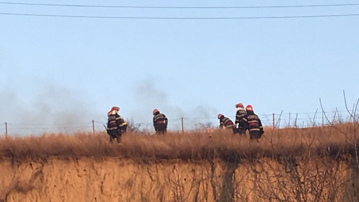 Două echipaje de pompieri au intervenit pentru a stinge un incendiu izbucnit pe un teren, în apropiere de localitatea Mineri.