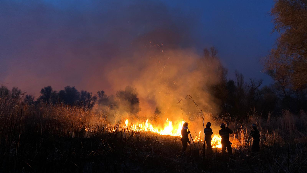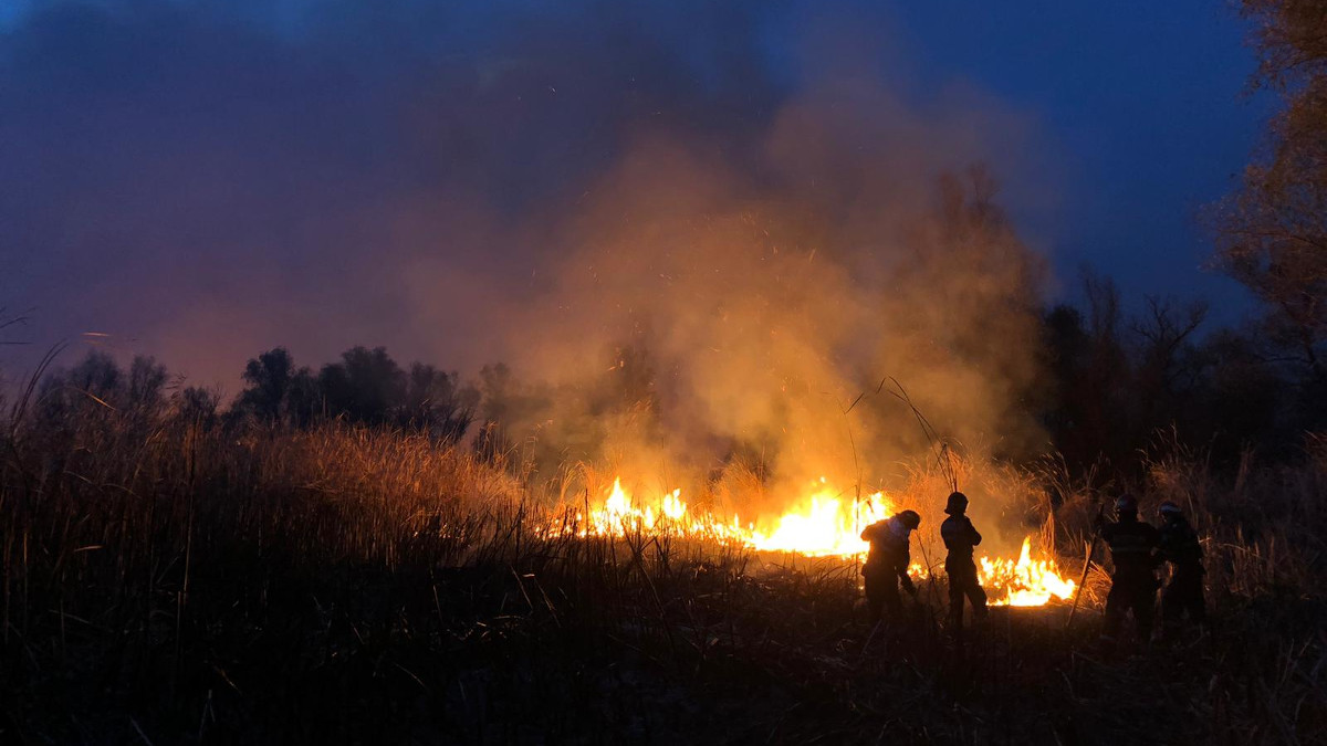 Pompierii au intervenit în zona greu accesibilă unde se manifesta incendiul de vegetație uscată. FOTO ISU Delta Tulcea